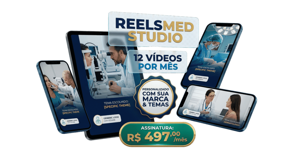 Esqueça vídeos genéricos. Nós inserimos sua logomarca, seu nome, seu CRM e o WhatsApp da clínica em todos os vídeos. O paciente assiste e sabe onde agendar.